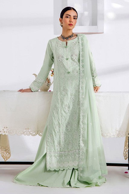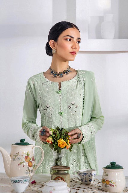 A comfortable and breathable cotton fabric that feels soft against the skin, perfect for the warm summer months. Its elegant design combines traditional Pakistani elements with modern cuts, making it ideal for casual outings or festive gatherings.