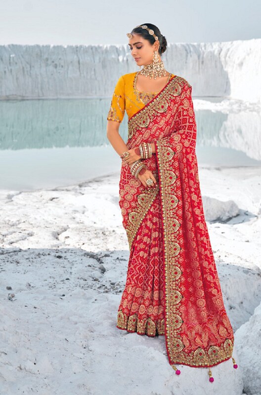 Georgette Silk Fusion Saree Red